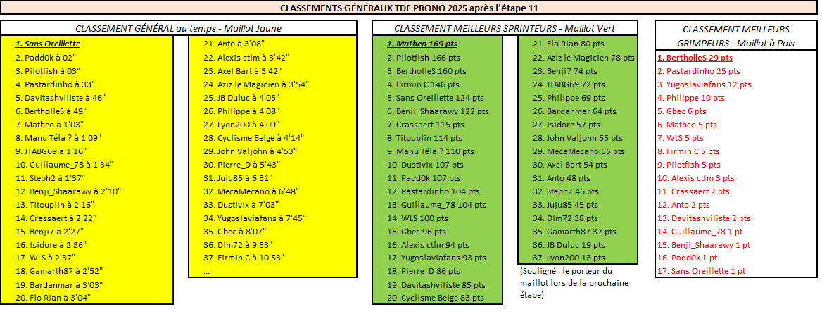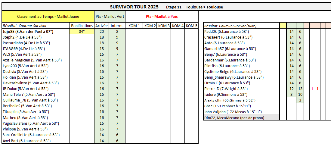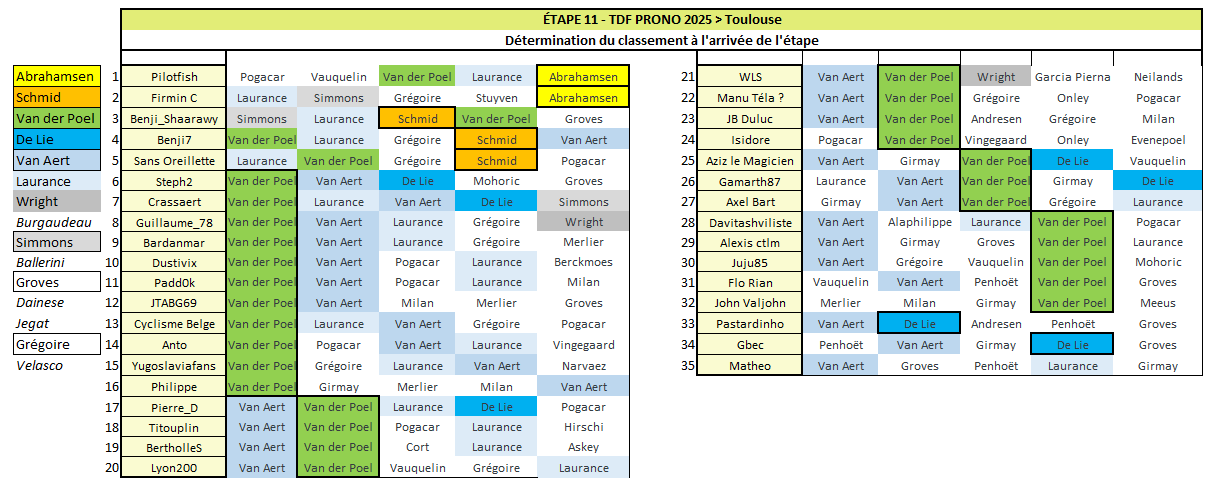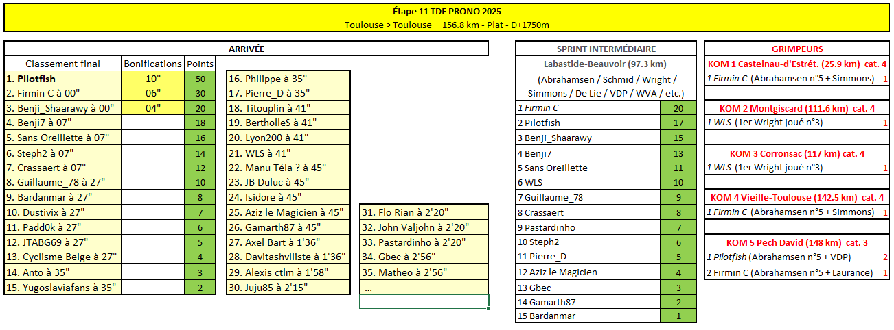 Résultats Étape 11 - TDF Prono & Survivor Tour 2025