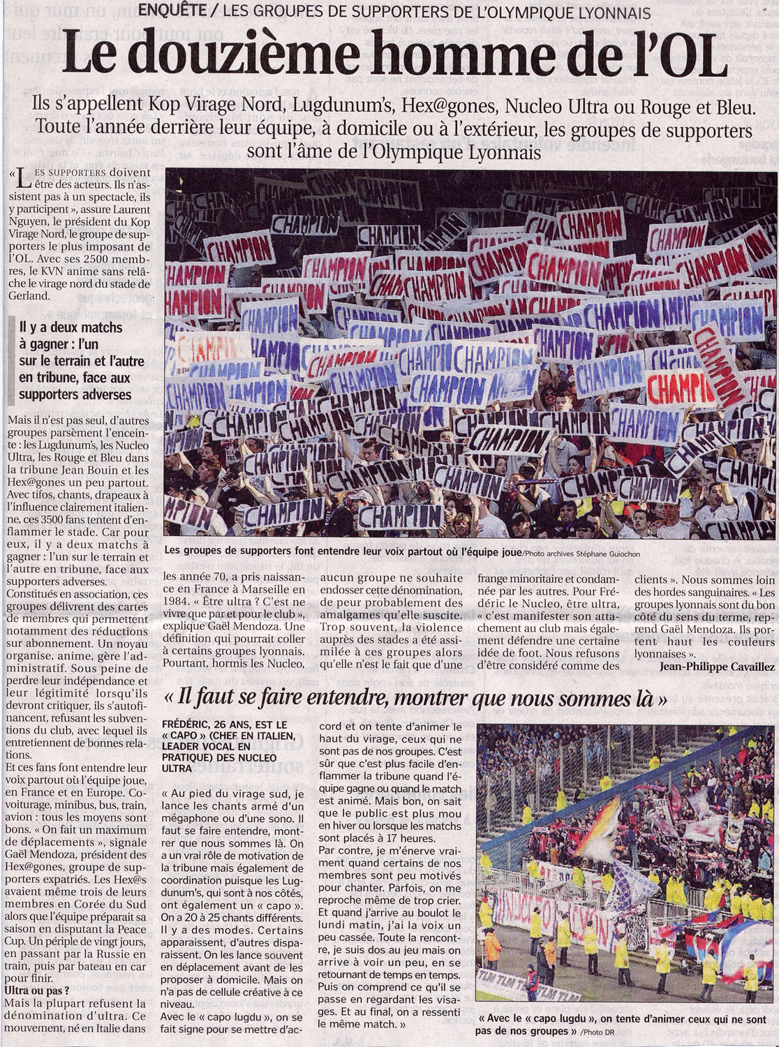 Posté(e) le 11 août 200520 a comment_86685 voici les articles tels qu'ils sont parus diamnche matin. Merci au journaliste qui sans prendre parti décrit assez justement la composition des tribunes de Gerland http://www.cnotremariage.fr/mariagea4 Signaler