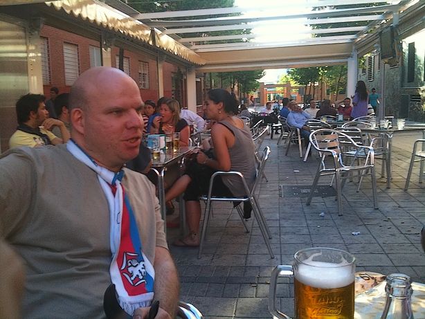 un dernier verre avant le match, derrière nous des supporters allemands du Werder et Bayern