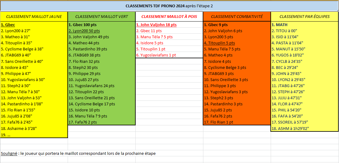 Résultats Étape 2 - TDF Prono & Survivor Tour 2024