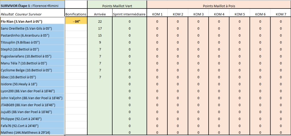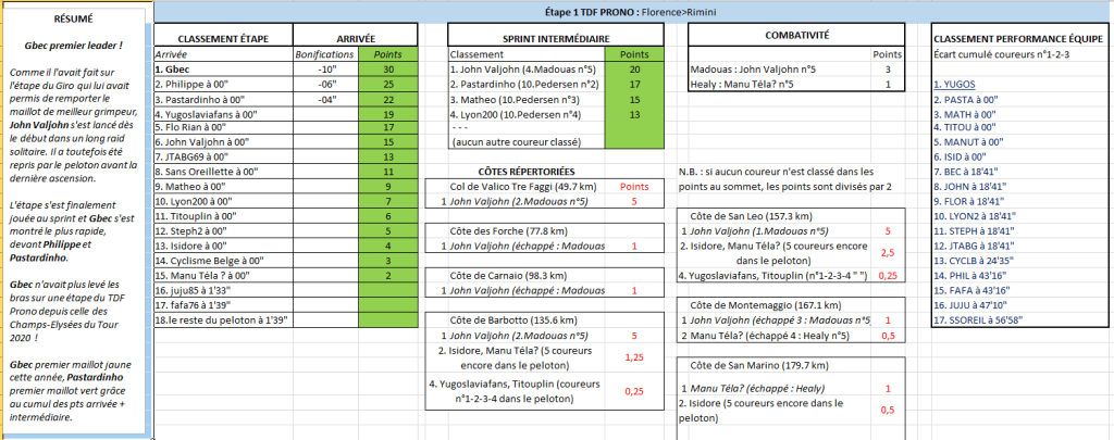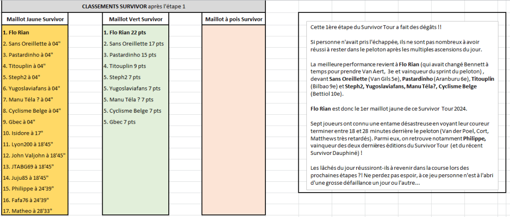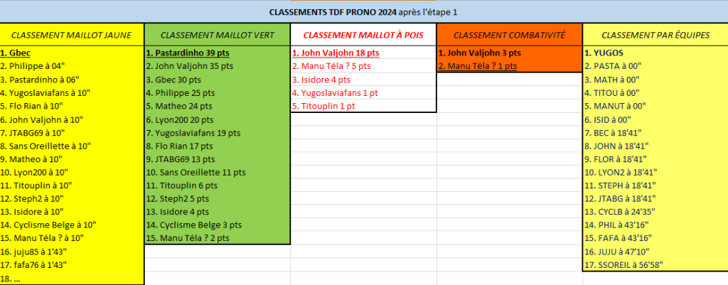 - Résultats Étape 1 - TDF Prono & Survivor Tour 2024