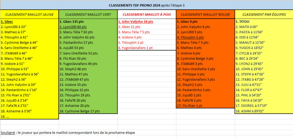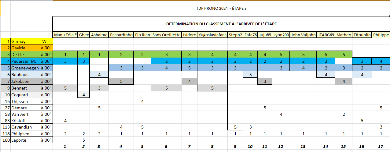 Résultats Étape 3 - TDF Prono & Survivor Tour 2024