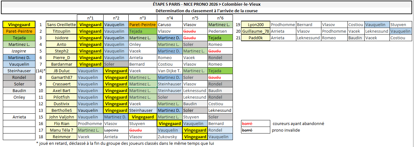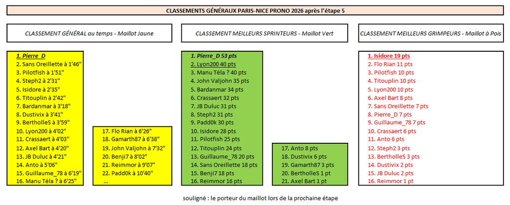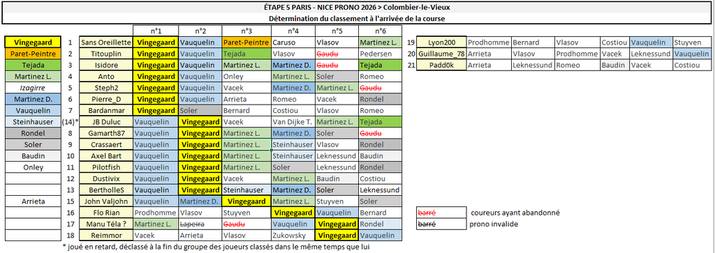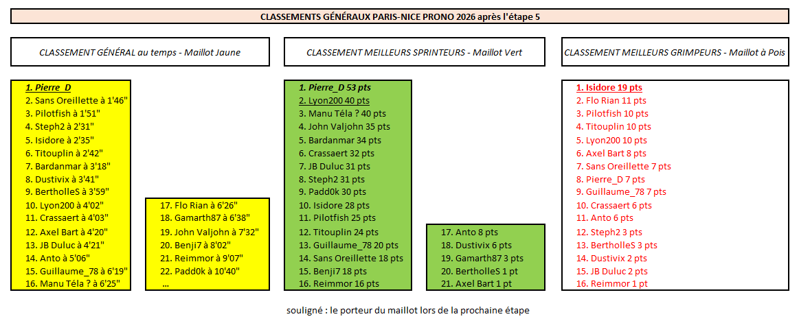 - Résultats Étape 5 - Paris-Nice Prono & Survivor 2026