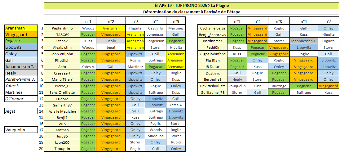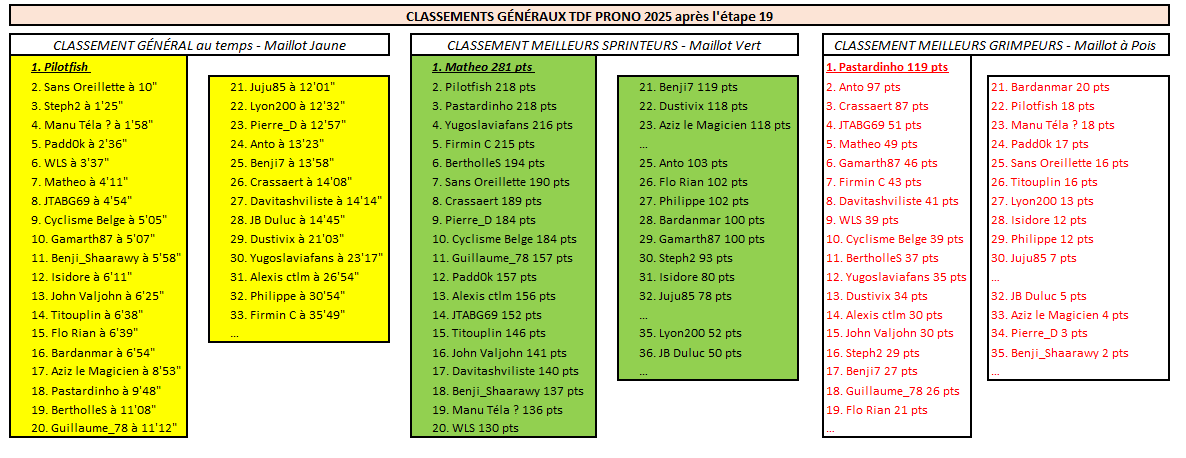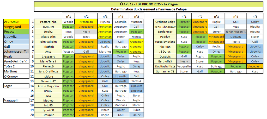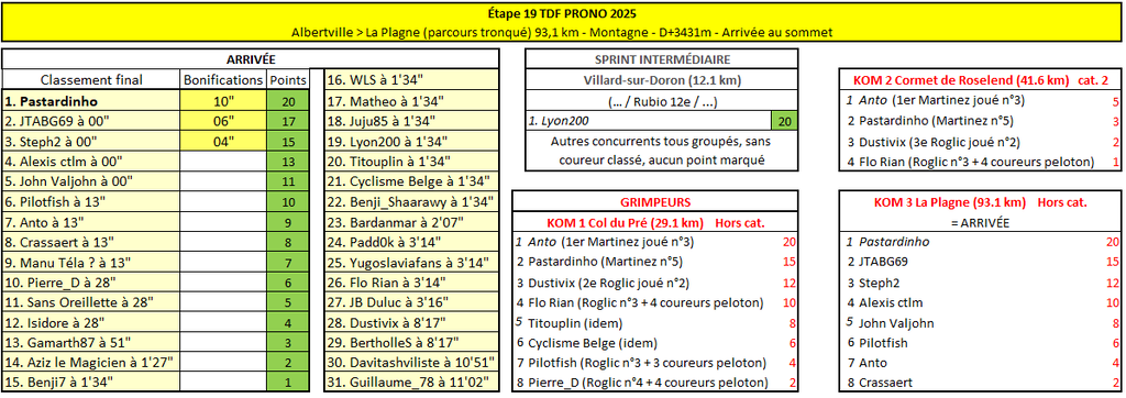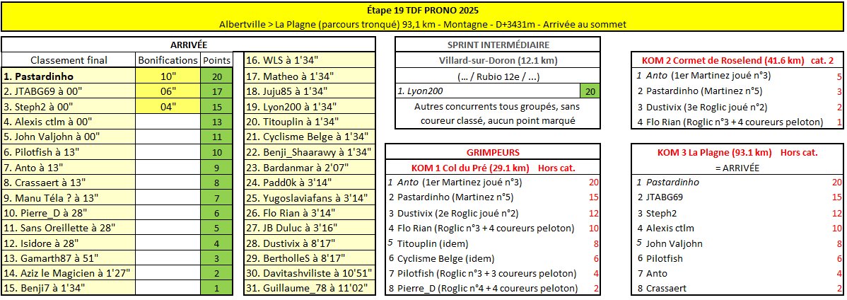Résultats Étape 19 - TDF Prono & Survivor Tour 2025