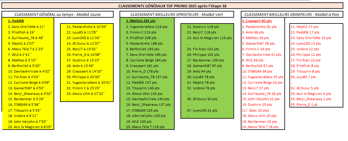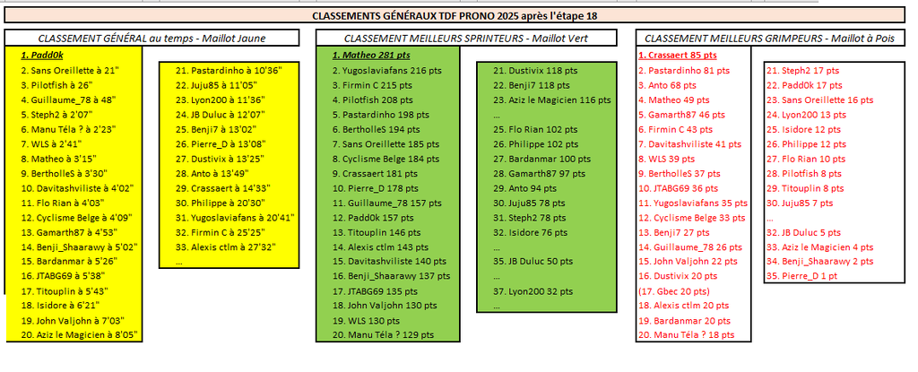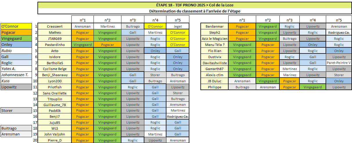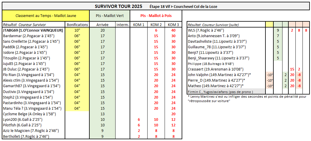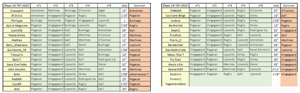 Résultats Étape 18 - TDF Prono & Survivor Tour 2025