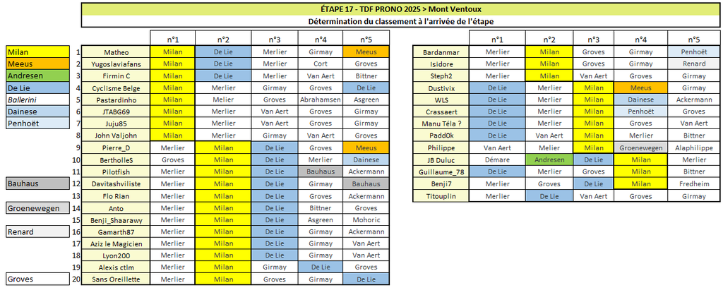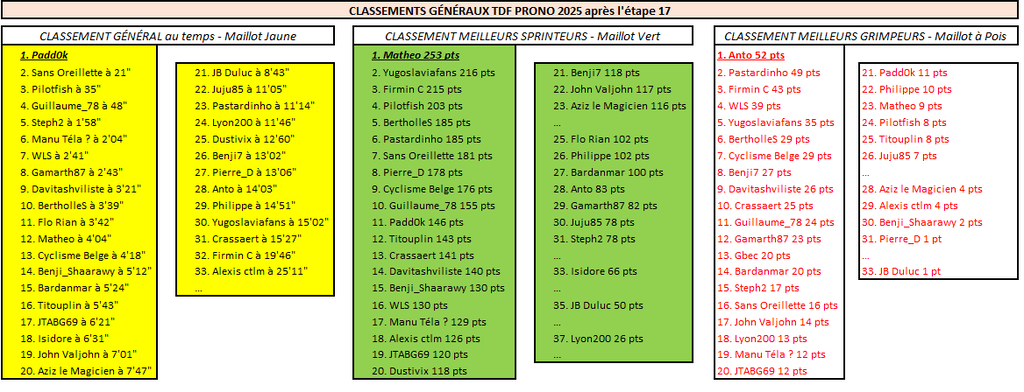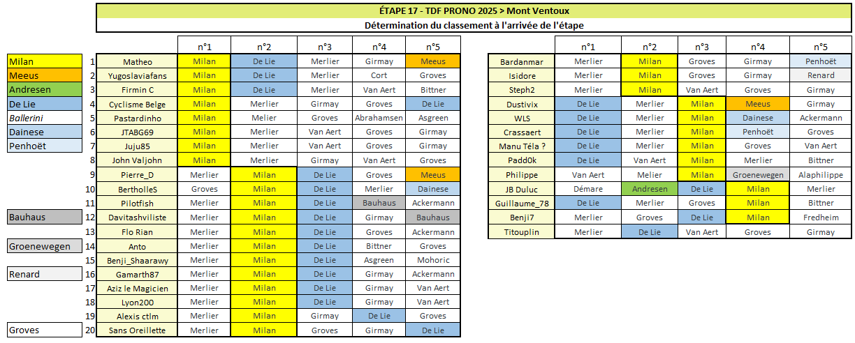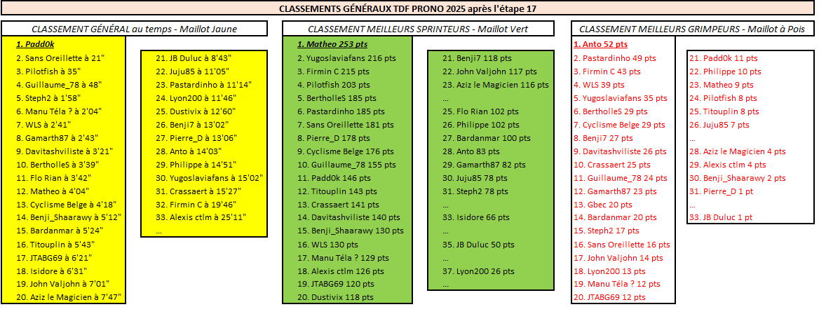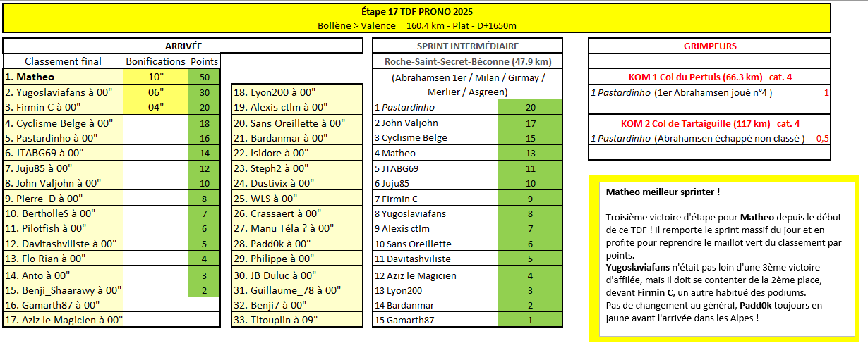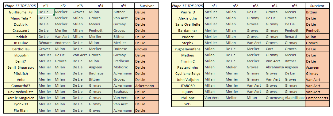 Résultats Étape 17 - TDF Prono & Survivor Tour 2025