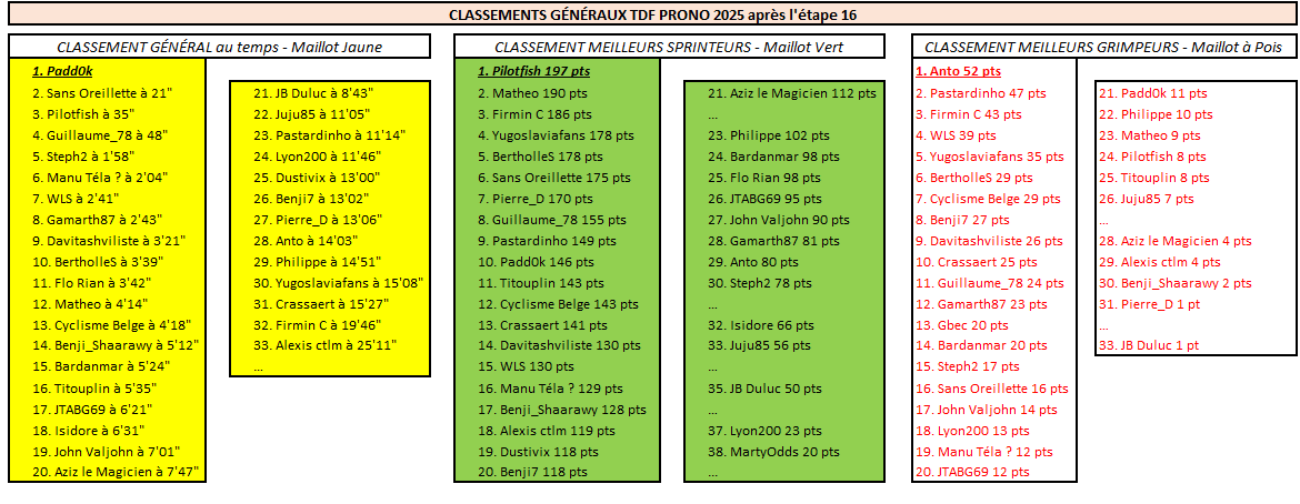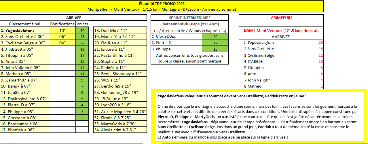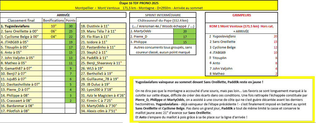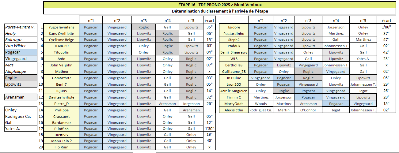 Résultats Étape 16 - TDF Prono & Survivor Tour 2025