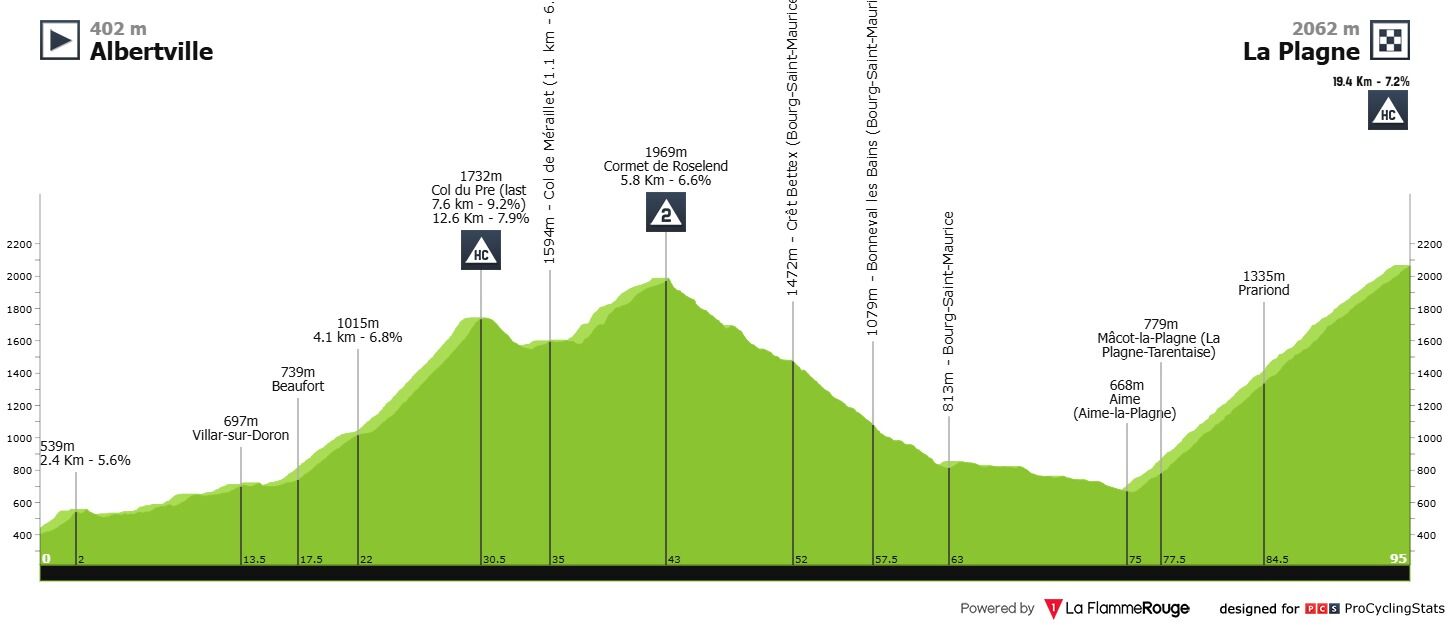 Notez que l'étape a été raccourcie et ne fera que 95km (mais le site officiel du Tour continue de donner l'ancien parcours). Voici le nouveau profil :