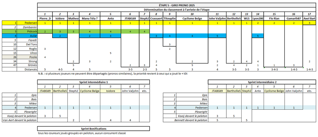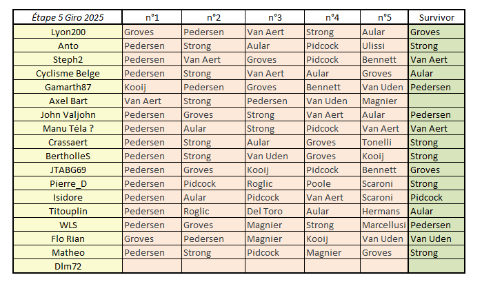 Résultats Étape 5 - Giro Prono & Survivor 2025