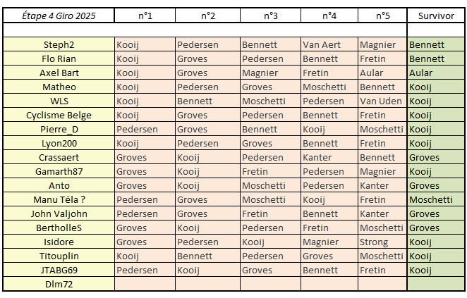 Résultats Étape 4 - Giro Prono & Survivor 2025