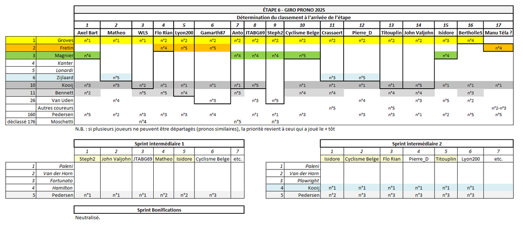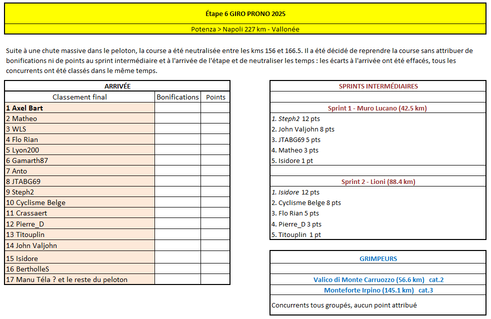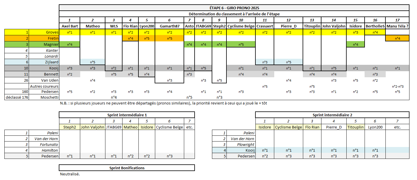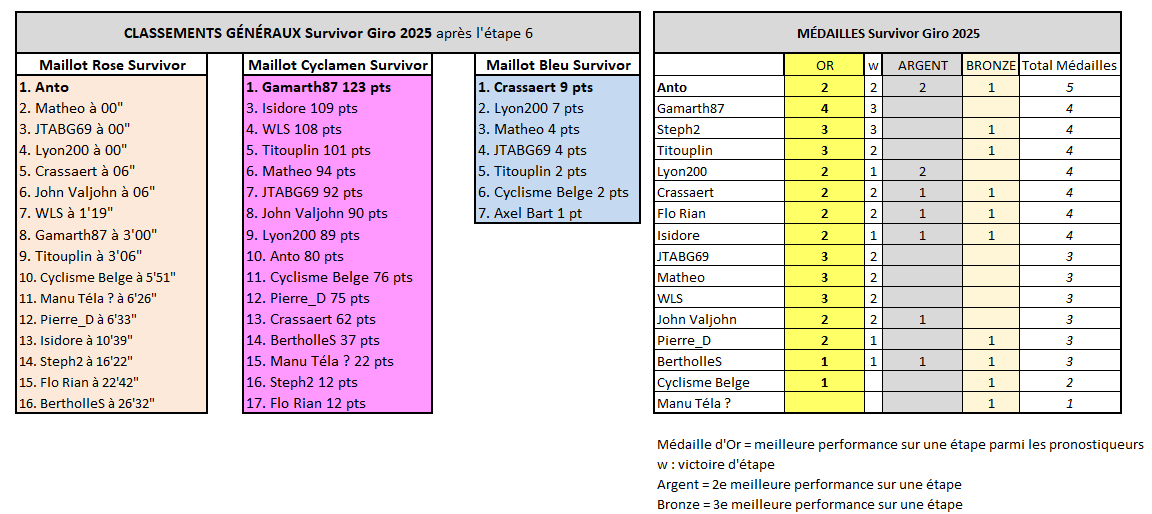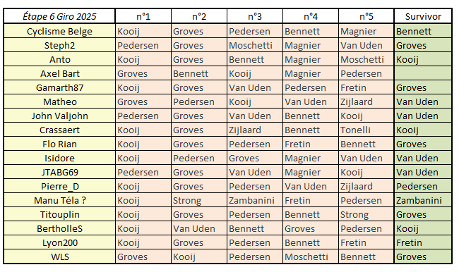 Résultats Étape 6 - Giro Prono & Survivor 2025