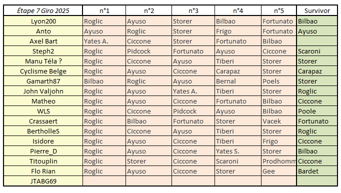 Étape 7 - Giro Prono & Survivor Giro 2025