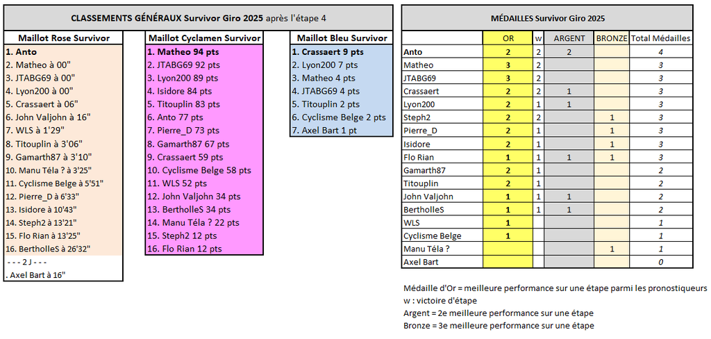 Étape 4 - Giro Prono & Survivor Giro 2025