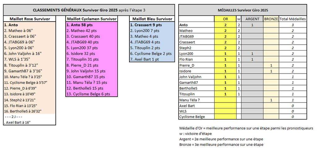 Étape 3 - Giro Prono & Survivor Giro 2025