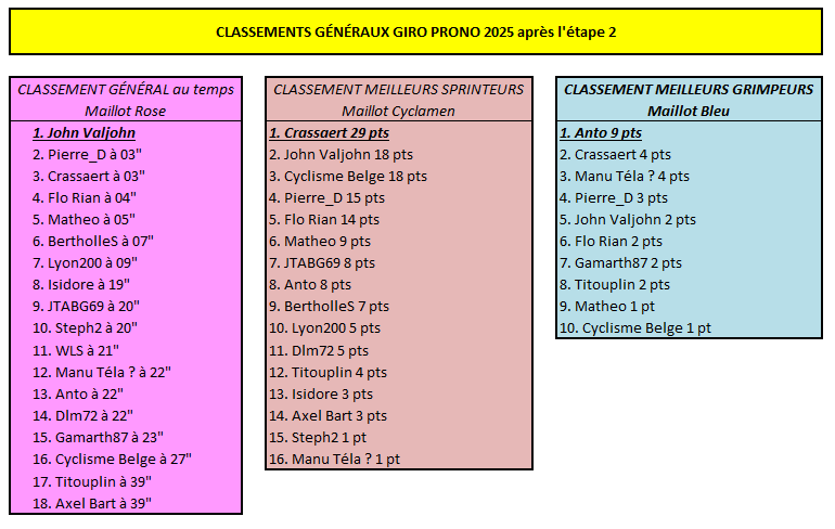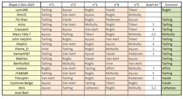 Résultats Étape 2 - Giro Prono & Survivor 2025