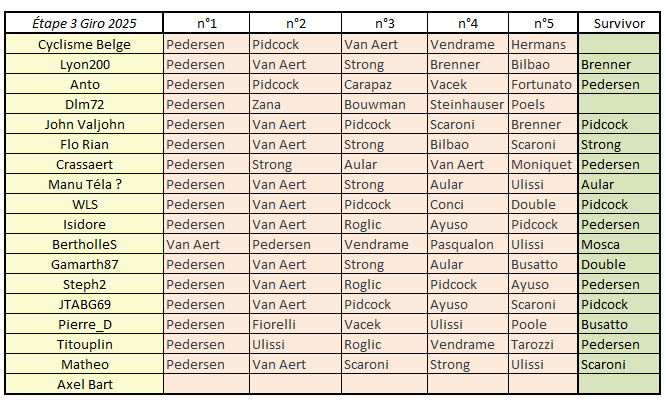 Étape 3 - Giro Prono & Survivor Giro 2025