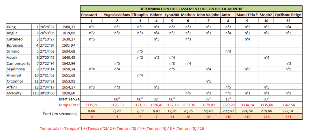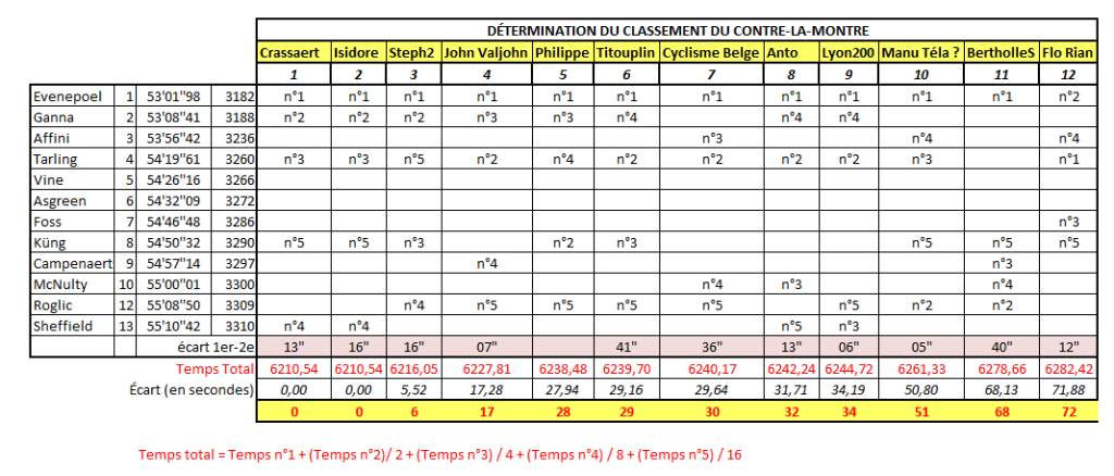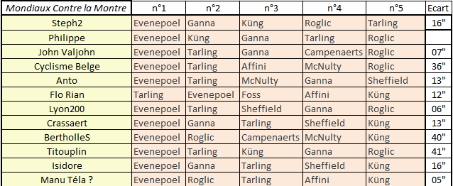 17. Récapitulatif des pronos pour cette étape : Bon chrono à tous, que le meilleur gagne !