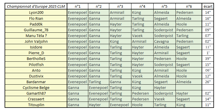Championnats d'Europe 2025 Prono - Contre la Montre individuel