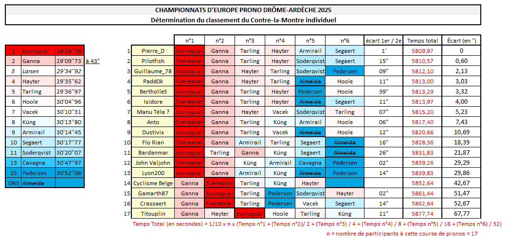 Résultats & Palmarès Contre-la-montre Championnat d'Europe Drôme-Ardèche 2025 Prono