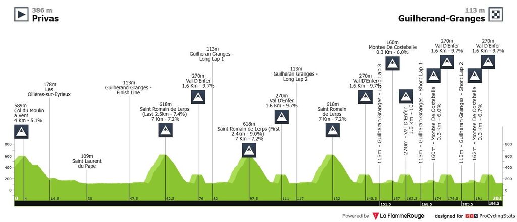 Envoyez votre prono ! Tout le monde peut jouer. Coureur n°1 : Coureur n°2 : Coureur n°3 : Coureur n°4 : Coureur n°5 : Coureur n°6 : ----------- Championnats d'Europe Drôme-Ardèche 2025 (Élite Hommes) dimanche 5 octobre 2025 Privas > Guilherand-Granges 202.5 km D+3401m Départ de la course : dimanche à 11h45 ----------------- Le profil : ----------------- Règlement identique à celui des précédentes courses. Pour mémoire : CLASSEMENT SUR LA LIGNE D'ARRIVÉE Sur la ligne d'arrivée de la course vous serez classés en fonction du classement du coureur le mieux placé à l'arrivée parmi les coureurs que vous avez choisis, en comparant votre prono avec ceux des autres joueurs participants. À l'arrivée de la course, on regarde qui a joué le coureur qui vient de remporter la course (si quelqu'un l'a joué). - les joueurs qui ont pronostiqué le vainqueur de la course en n°1 sont classés devant, puis ceux qui l'ont joué en n°2, puis ceux qui l'ont joué en n°3, puis ceux qui l'ont joué en n°4, puis ceux qui l'ont joué en n°5, puis ceux qui l'ont joué en n°6. Ceux qui ne l'ont pas joué du tout arrivent après, en donnant la priorité à ceux d'entre eux qui ont trouvé le coureur classé 2ème de la course (joué n°1 > joué n°2 > joué n°3, etc.), puis à ceux qui n'ont trouvé que le 3ème, etc. - les joueurs à égalité (par exemple si plusieurs joueurs ont joué n°1 le coureur concerné) sont départagés en fonction de leur 2ème coureur le mieux classé à l'arrivée, en suivant toujours la même règle : coureur joué en n°1 > n°2 > n°3 > n°4 > n°5 > n°6. - Au besoin, si la prise en compte du deuxième meilleur coureur ne suffit pas, les joueurs exæquo sont départagés en fonction de leur 3ème meilleur coureur, et de sa position dans leur prono, ou si cela ne suffit toujours pas, on prend en compte leur 4ème coureur, puis, si nécessaire, le 5ème pour la photo-finish. En dernier recours, si plusieurs joueurs ont joué exactement les mêmes coureurs dans le même ordre, c'est celui qui aura communiqué ses ordres le plus tôt qui sera classé premier. Accessoirement, on affinera le classement en calculant les écarts 'au temps', en appliquant les mêmes barèmes que pour les étapes de la récente Vuelta Prono.