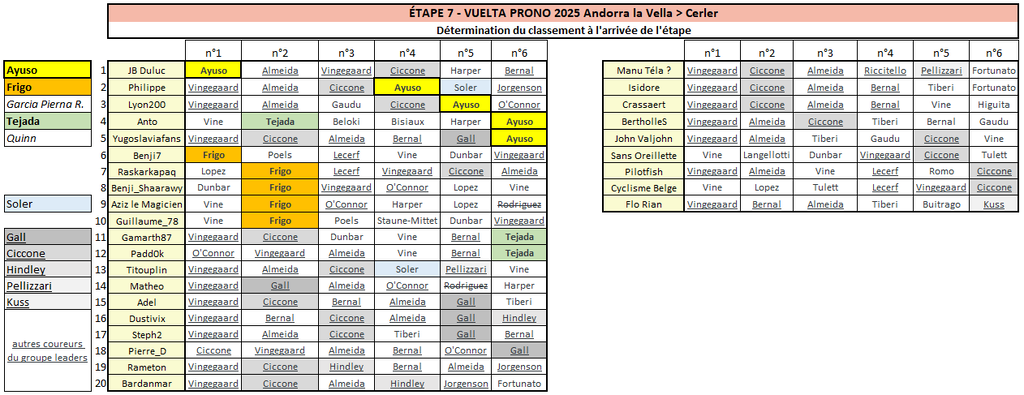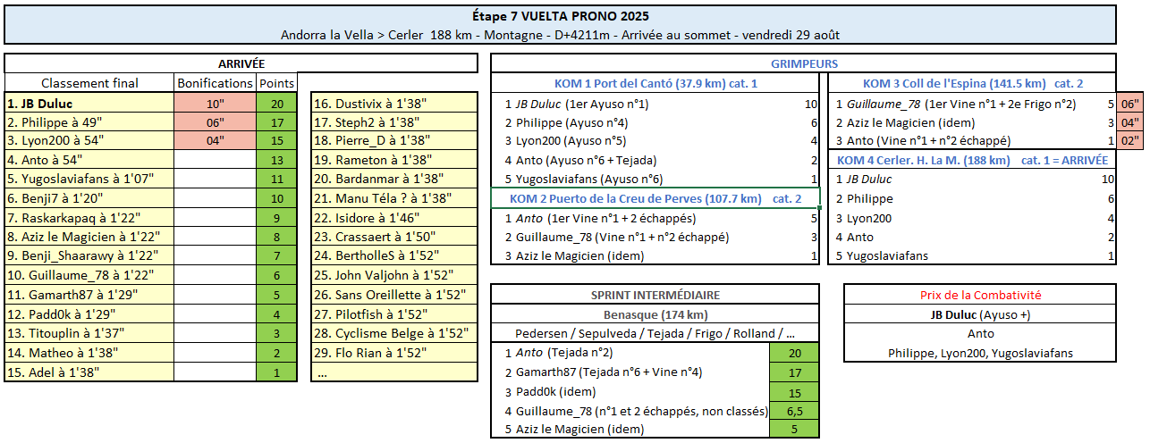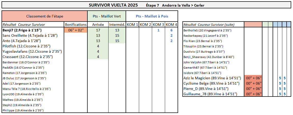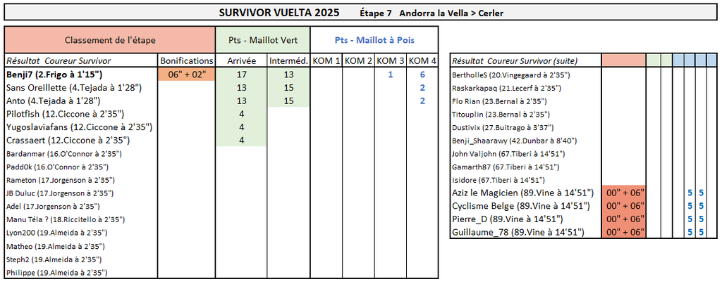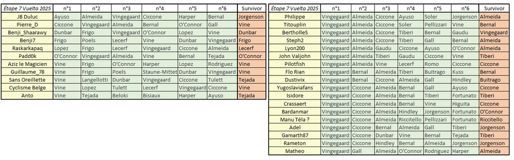 Résultats Étape 7 - Vuelta Prono & Survivor 2025