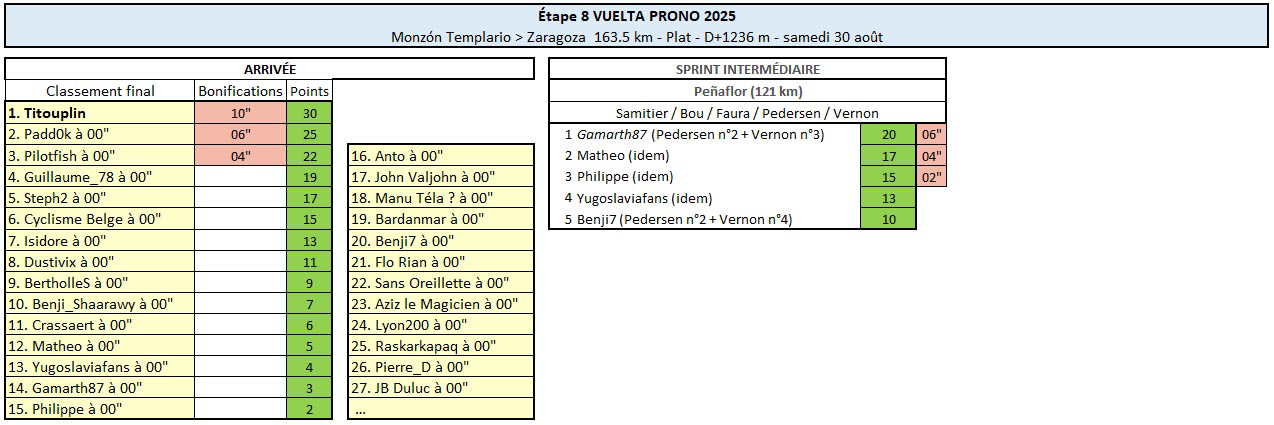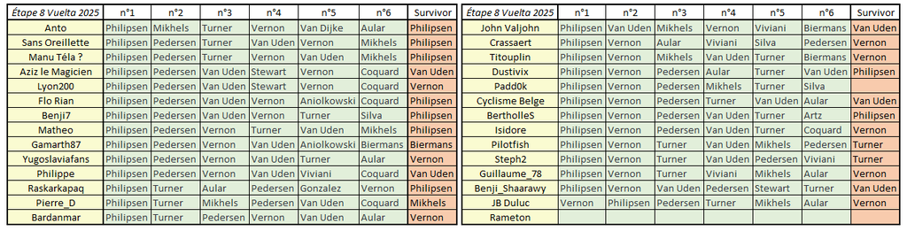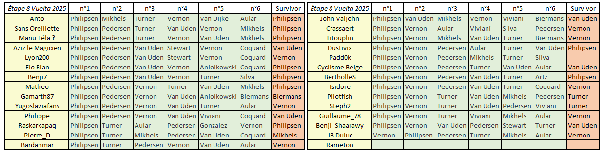 Résultats Étape 8 - Vuelta Prono & Survivor 2025