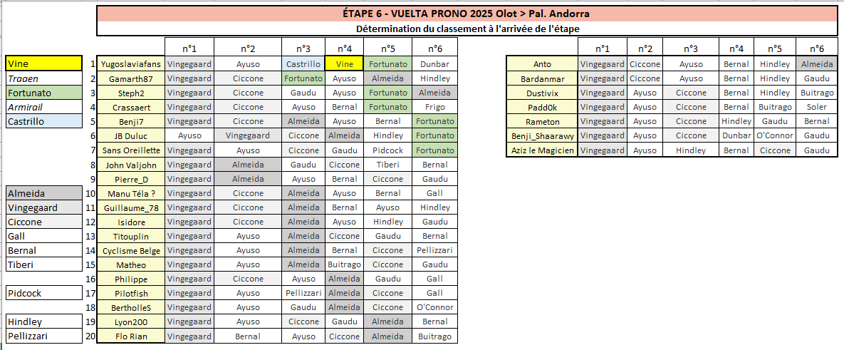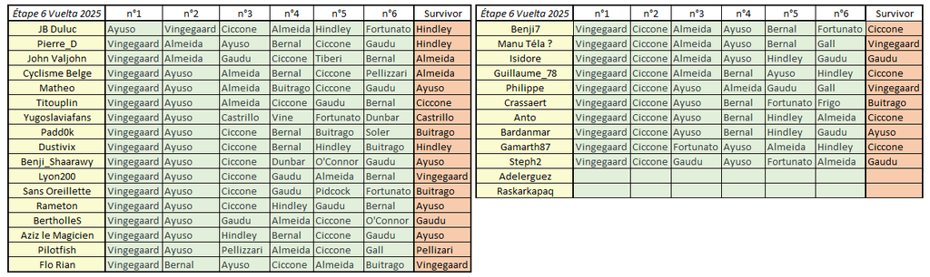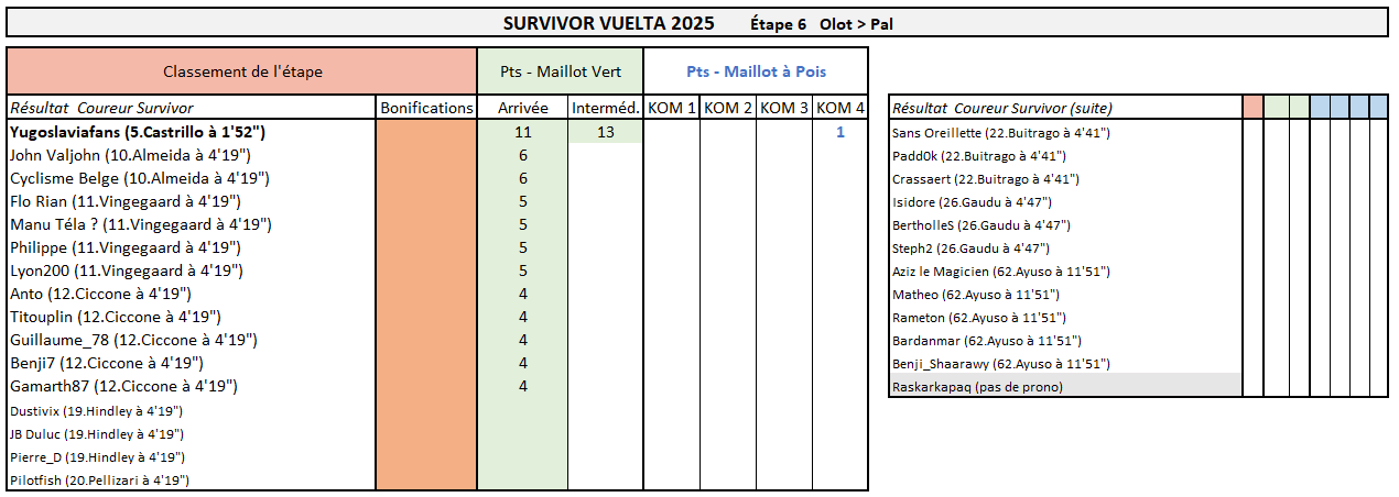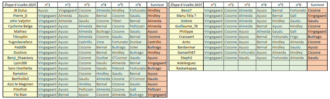 Résultats Étape 6 - Vuelta Prono & Survivor 2025