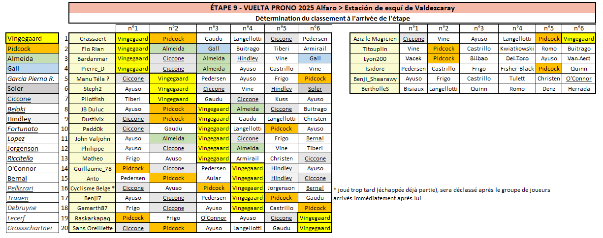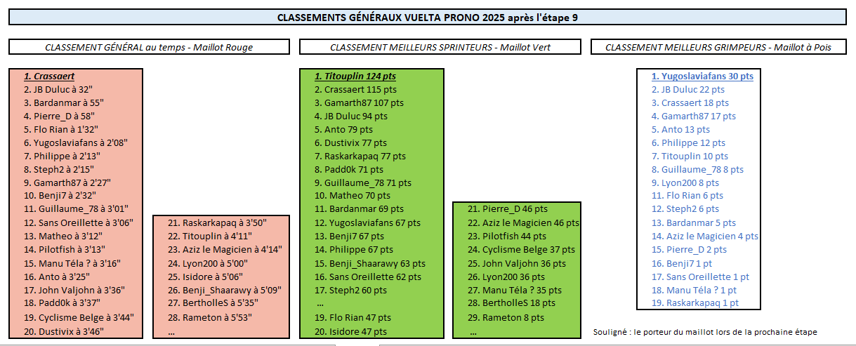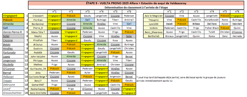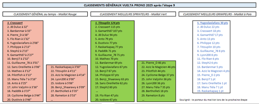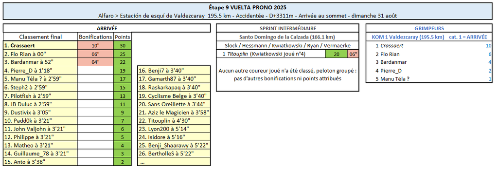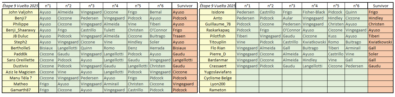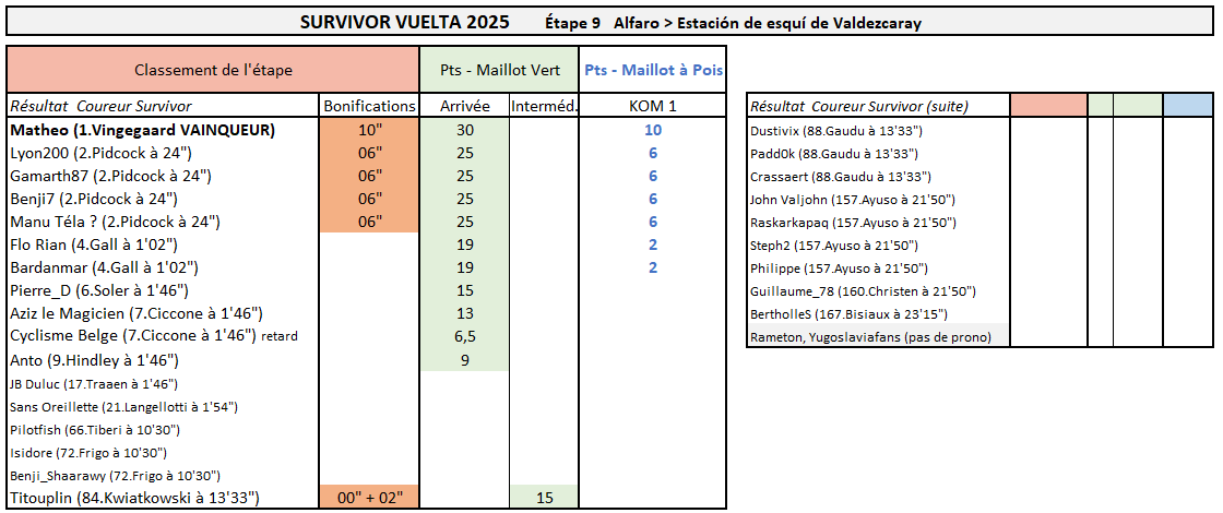Résultats Étape 9 - Vuelta Prono & Survivor 2025