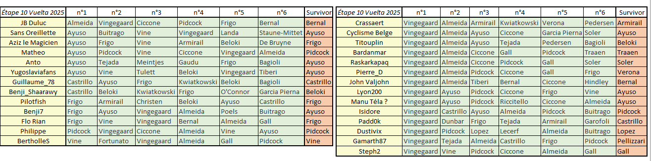 Étape 10 - Vuelta Prono & Survivor 2025