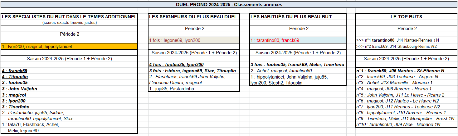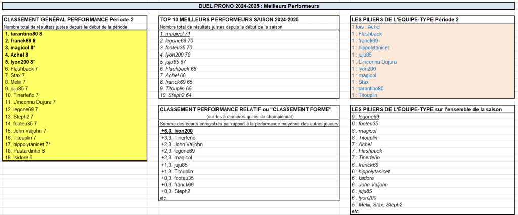 Résultats Grille n°2/10 Duel Prono Période 2 + Survivor & Goleador Aller L1 2024-2025