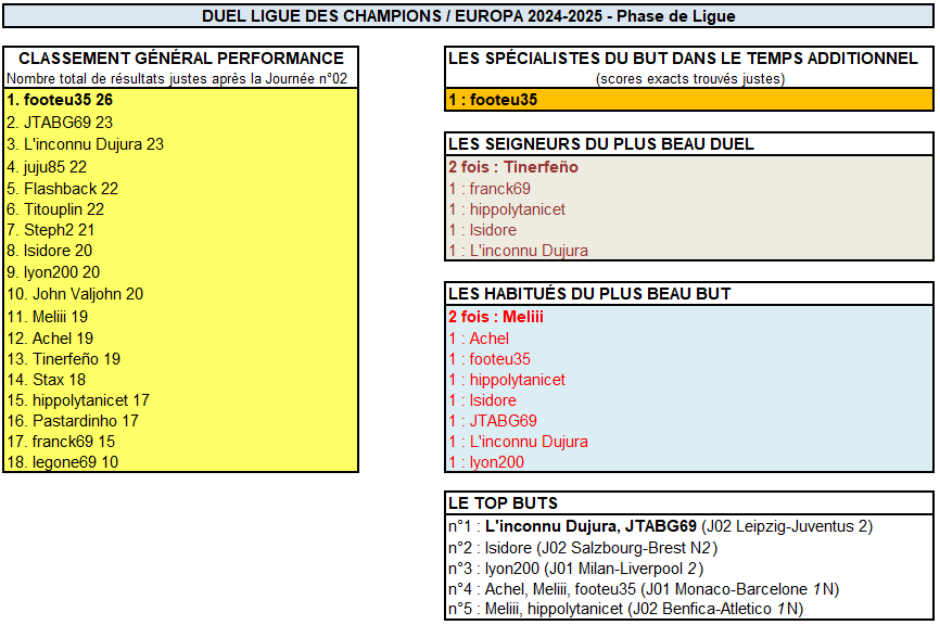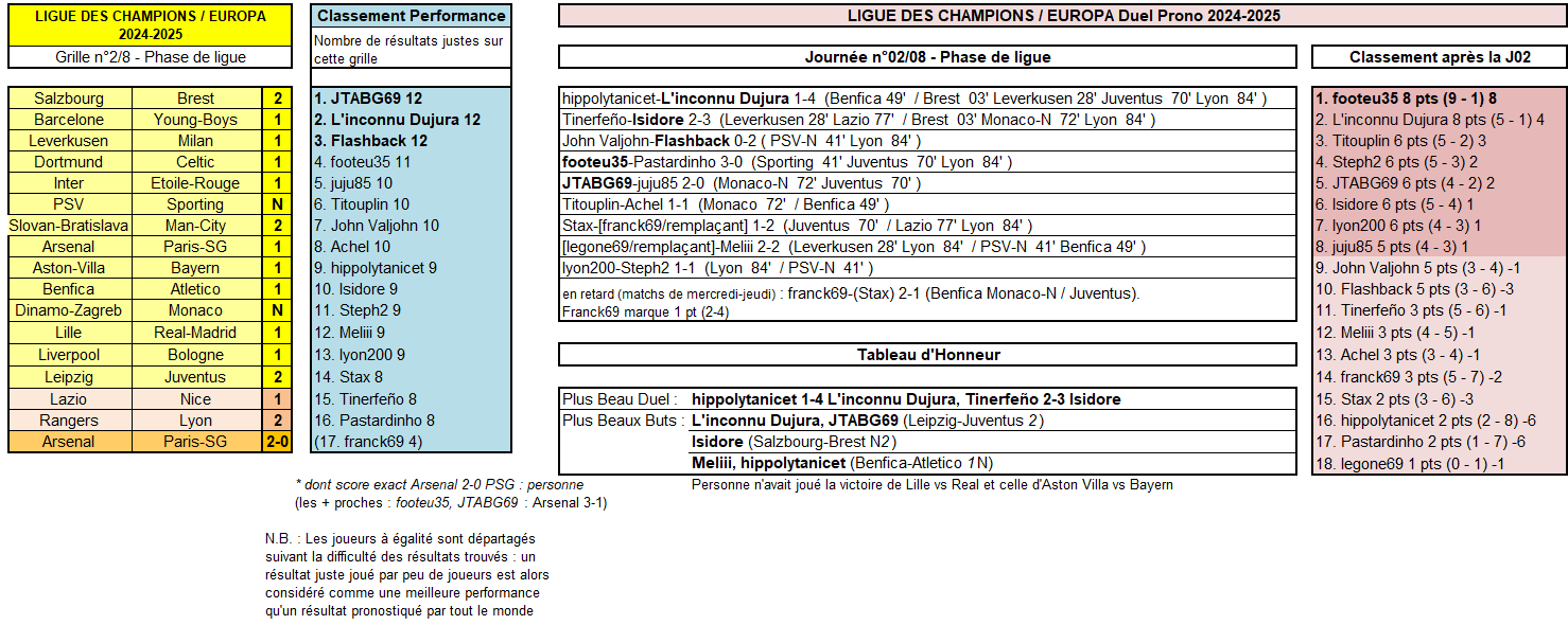 Résultats J02 Duel Ligue des Champions / Europa 2024-2025