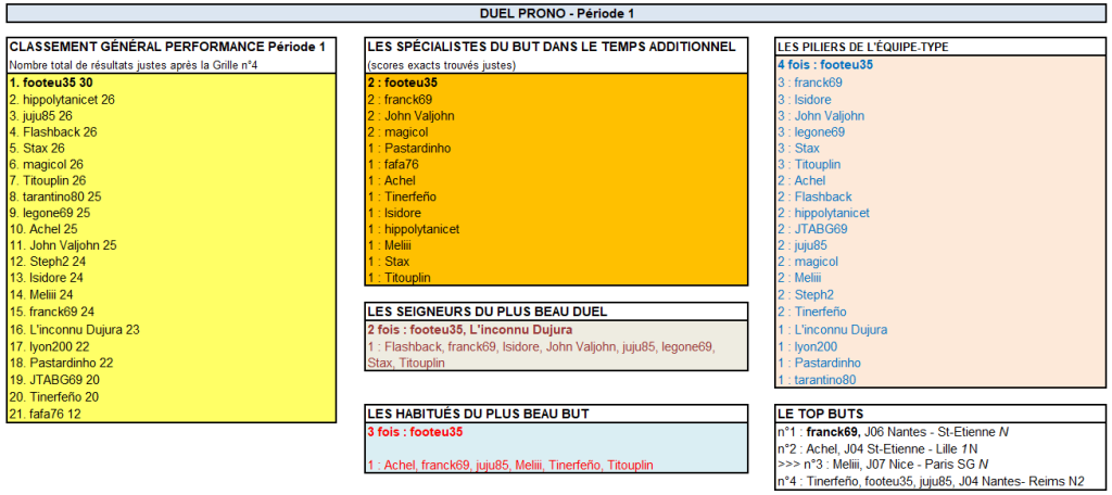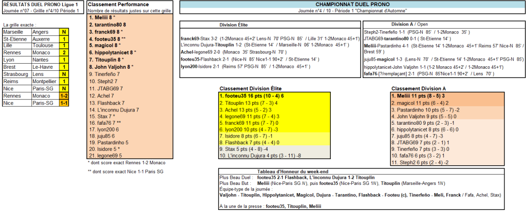 Résultats Grille n°4/10 Duel Prono Période 1 + Survivor & Goleador Aller L1 2024-2025